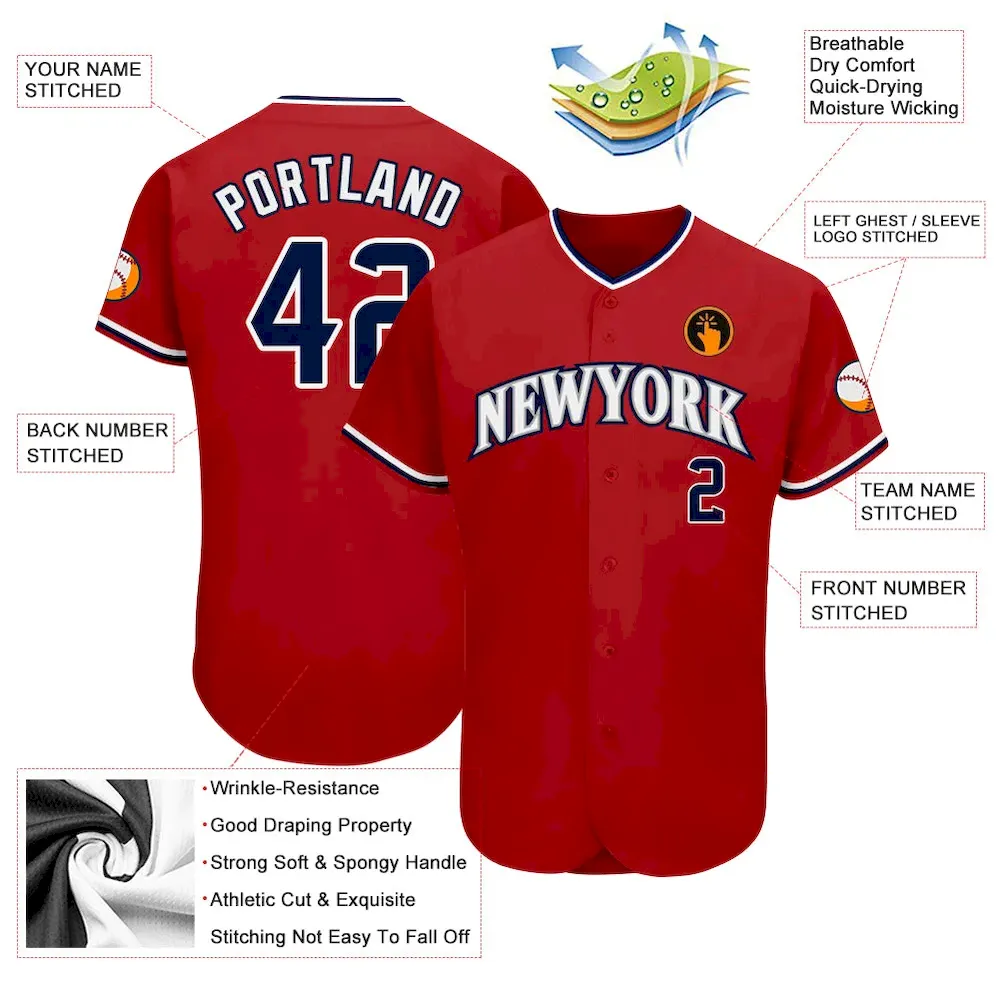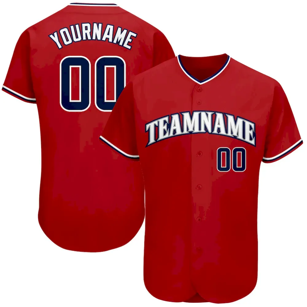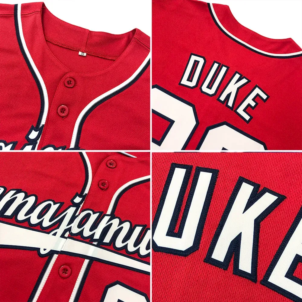 Custom Red Navy-White Authentic Baseball Jersey